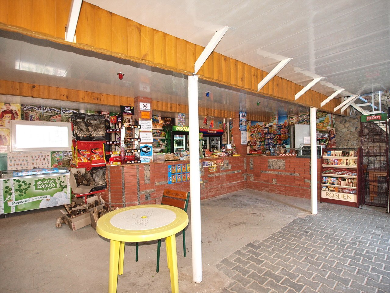На территории базы работает магазин, где Вы сможете приобрести необходимые продукты: фрукты, овощи.